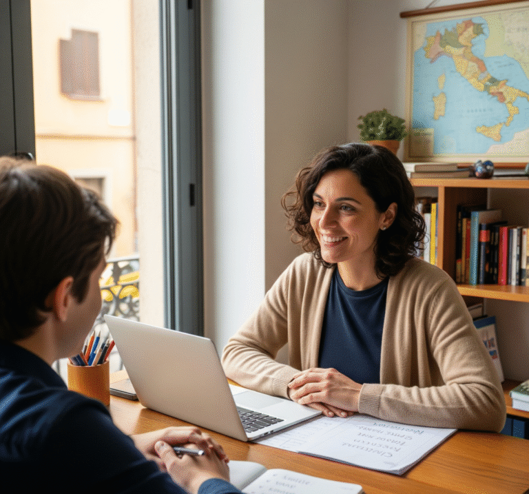 Studia quando vuoi, come vuoi, con un metodo cucito su di te Ogni percorso è costruito sulle tue esigenze: livello, obiettivi, passioni. Che tu voglia prepararti a un esame, migliorare la conversazione, leggere Dante o viaggiare in Italia, troverai un piano che ti rappresenta. Tutto si svolge online, in modo flessibile, professionale, comodo — ma mai impersonale.